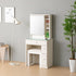 収納充実でリーズナブルなドレッサー。鏡を開けた裏側には、アクセサリーフック、と棚が付き、鏡横にも小棚がありますので、収納力抜群です。